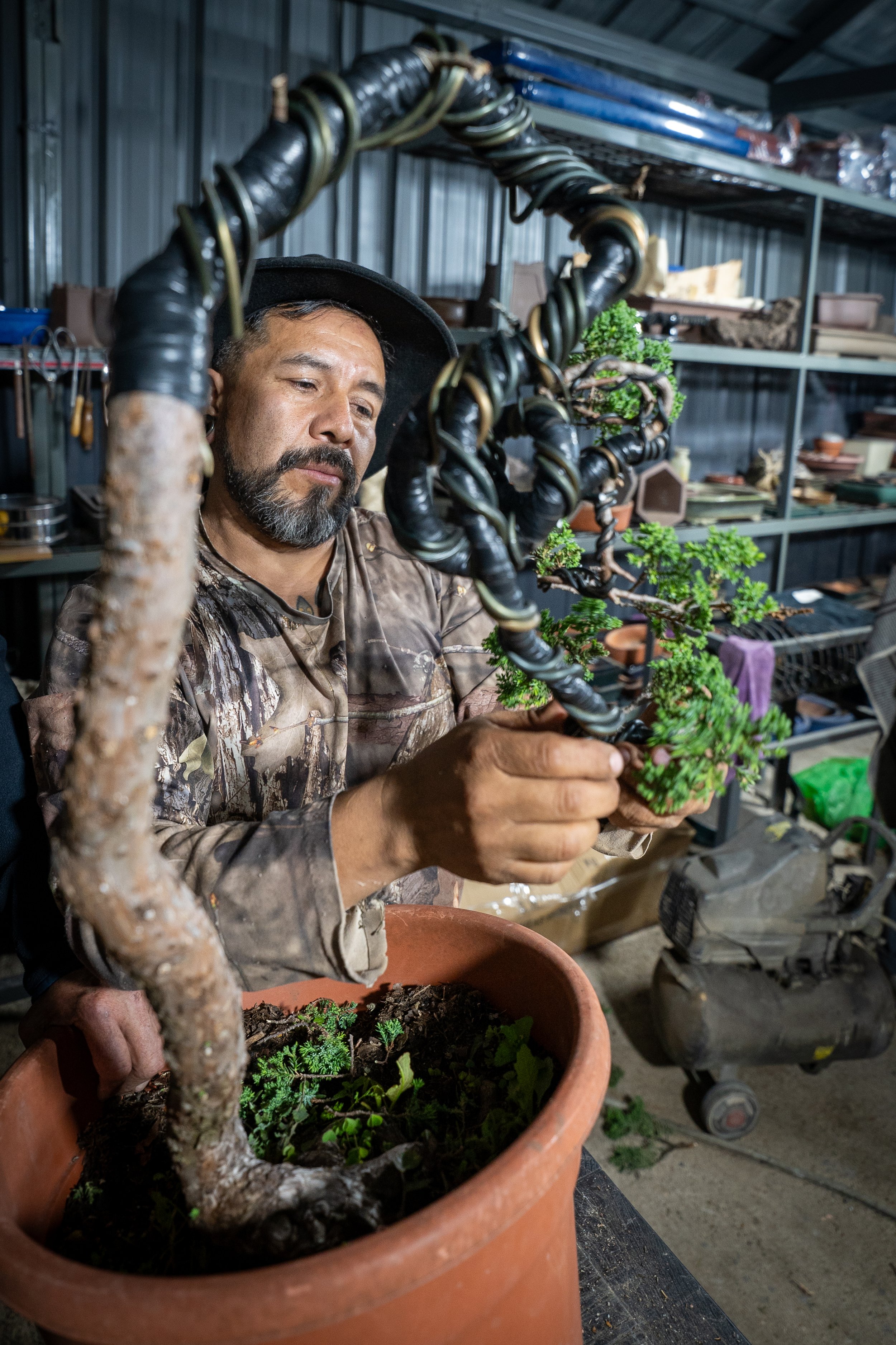 Wie ich schnell lerne, erfordert die Pflege und Gestaltung von Bonsais eine erstaunlich breite Palette an Fähigkeiten. Der Herr rechts im Bild,, verbrachte sogar drei Jahre in Spanien auf einer Bonsai-Schule und lernte dort bei einem japanischen Meister, einem sogenannten "Senpai".