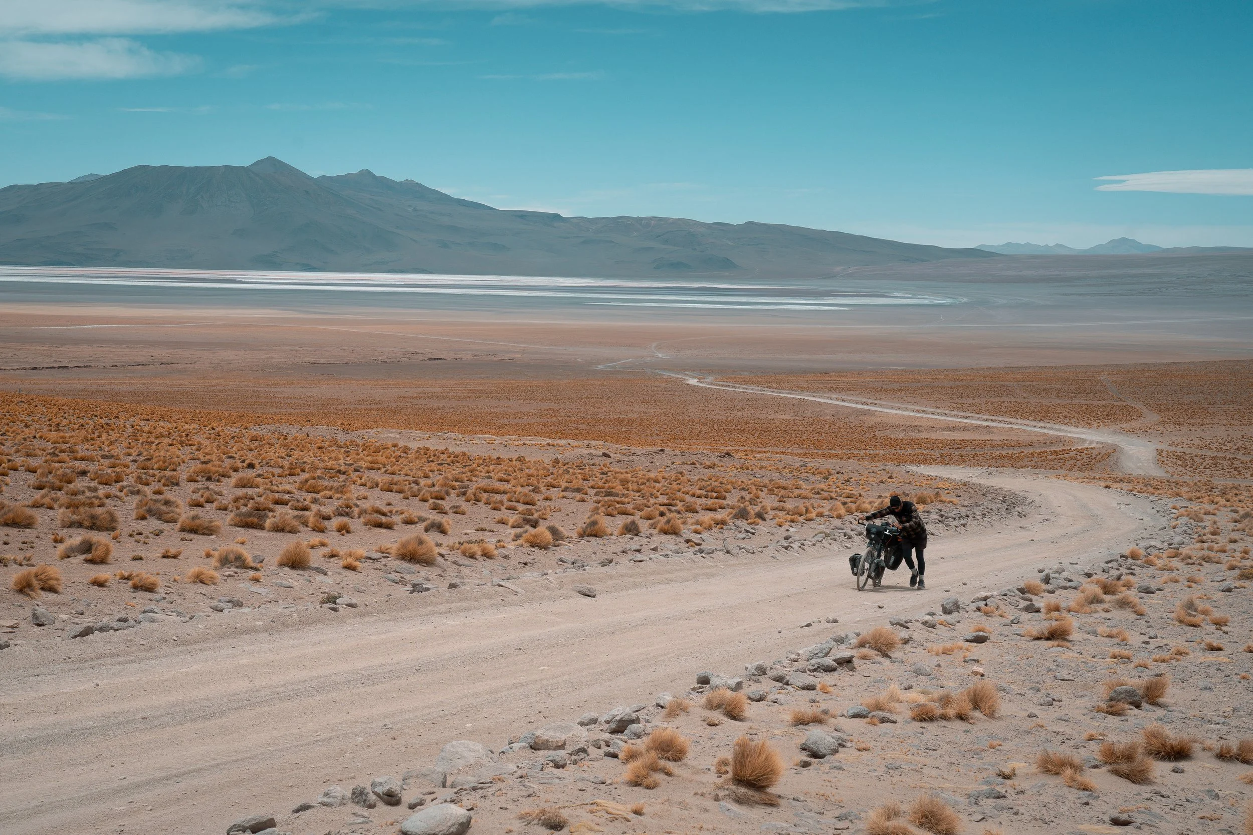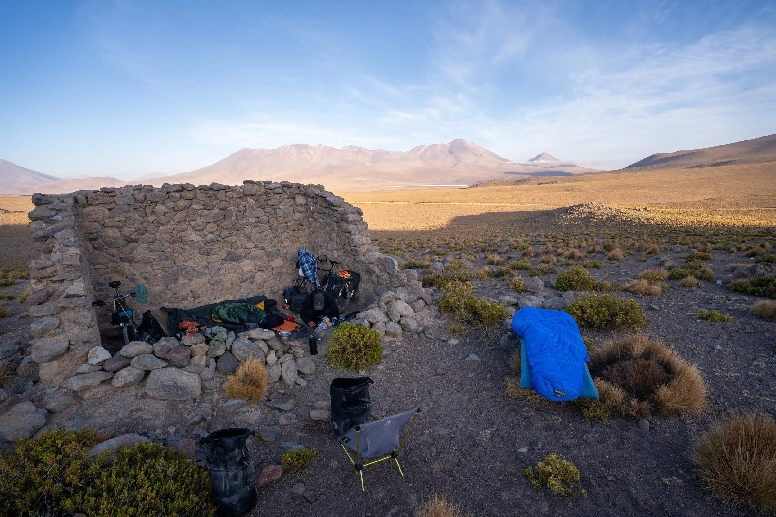 Bei Minusgraden am Morgen aus dem kuscheligen Schlafsack quälen, frühstücken, den ganzen Tag schieben oder langsam radeln und sich von den Landschaften begeistern lassen. Zeit, die Erlebnisse zu verarbeiten, gibt es gerade kaum, da wir uns bei schrumpfenden Essensvorräten auch ein bisschen an den Zeitplan von 10–12 Tagen halten müssen. Außerdem freuen wir uns auf eine warme Dusche und auf die sauerstoffreichere Luft in San Pedro de Atacama auf etwa 2500 Höhenmetern.