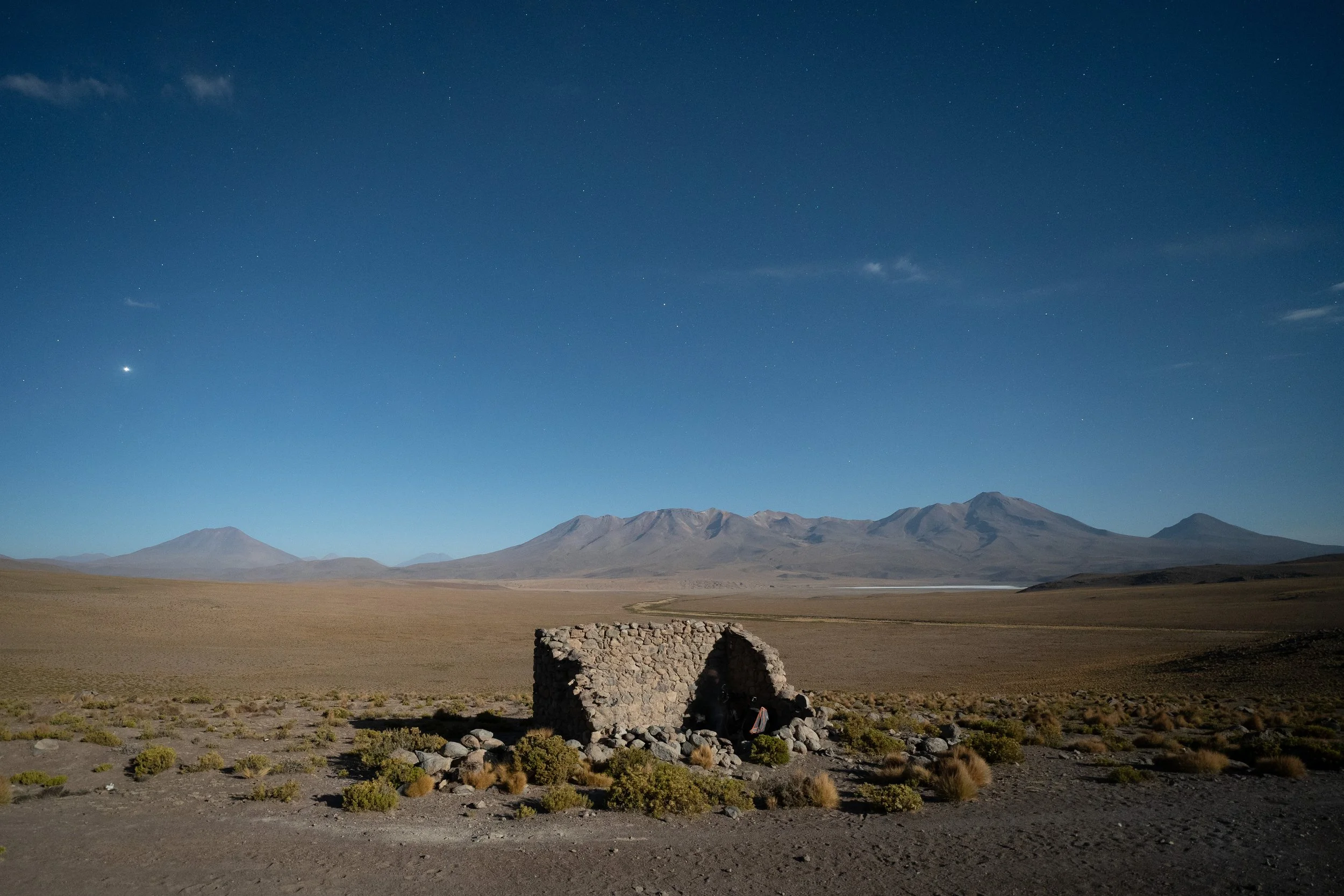 Überall können wir jedoch nicht schlafen, da jeden Tag ab etwa 16:00 Uhr nachmittags ein heftiger Wind zieht. Ohne entsprechenden Schutz würden uns die Zeltwände um die Ohren fliegen, und selbst mit unseren High-End-Schlafsäcken würden wir vermutlich frieren. Daher sind wir sehr froh, diese Ruine gefunden zu haben, und entscheiden uns, nicht einmal das Zelt aufzuschlagen, um den Sternenhimmel ungestört beobachten zu können.