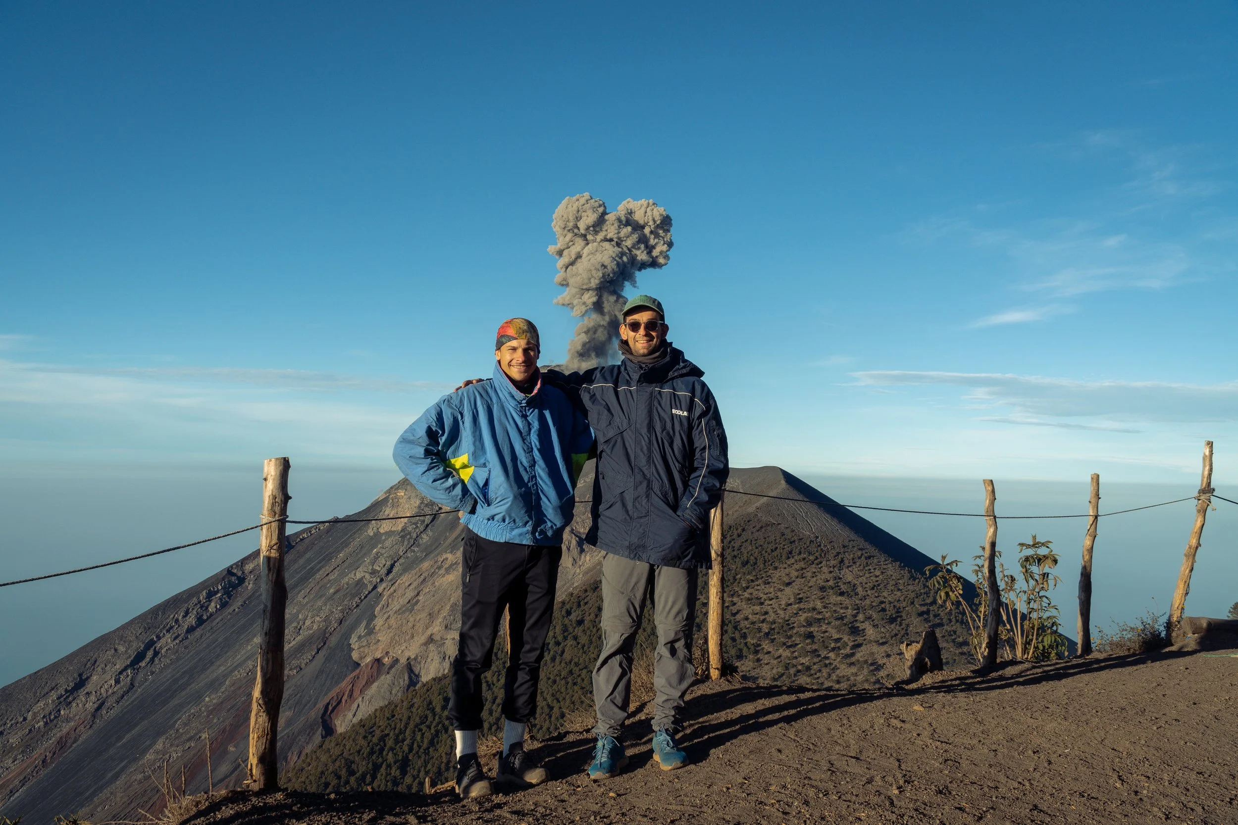 An Tag 2 in Antigua heißt es Rucksack packen für ein dreitägiges Abenteuer auf dem Vulkan Acatenango. Mit knapp 4000 Meter Höhe ist der Acatenango der zweithöchste Berg Guatemalas. Das Besondere jedoch ist nicht die Höhe, sondern die Nähe des Berges zu dem hochaktiven -und treffend benannten- Volcán de Fuego. Dieser spuckt im 20-Minuten Takt Rauchwolken, und alle paar Stunden darf man aus sicherer Entfernung kräftige Eruptionen beobachten. Der Rucksack ist bis oben voll mit Kameraequipment, da ist kaum noch Platz für Essen, Trinken und warme Kleidung. Die Prioritäten sind auf jeden Fall klar.